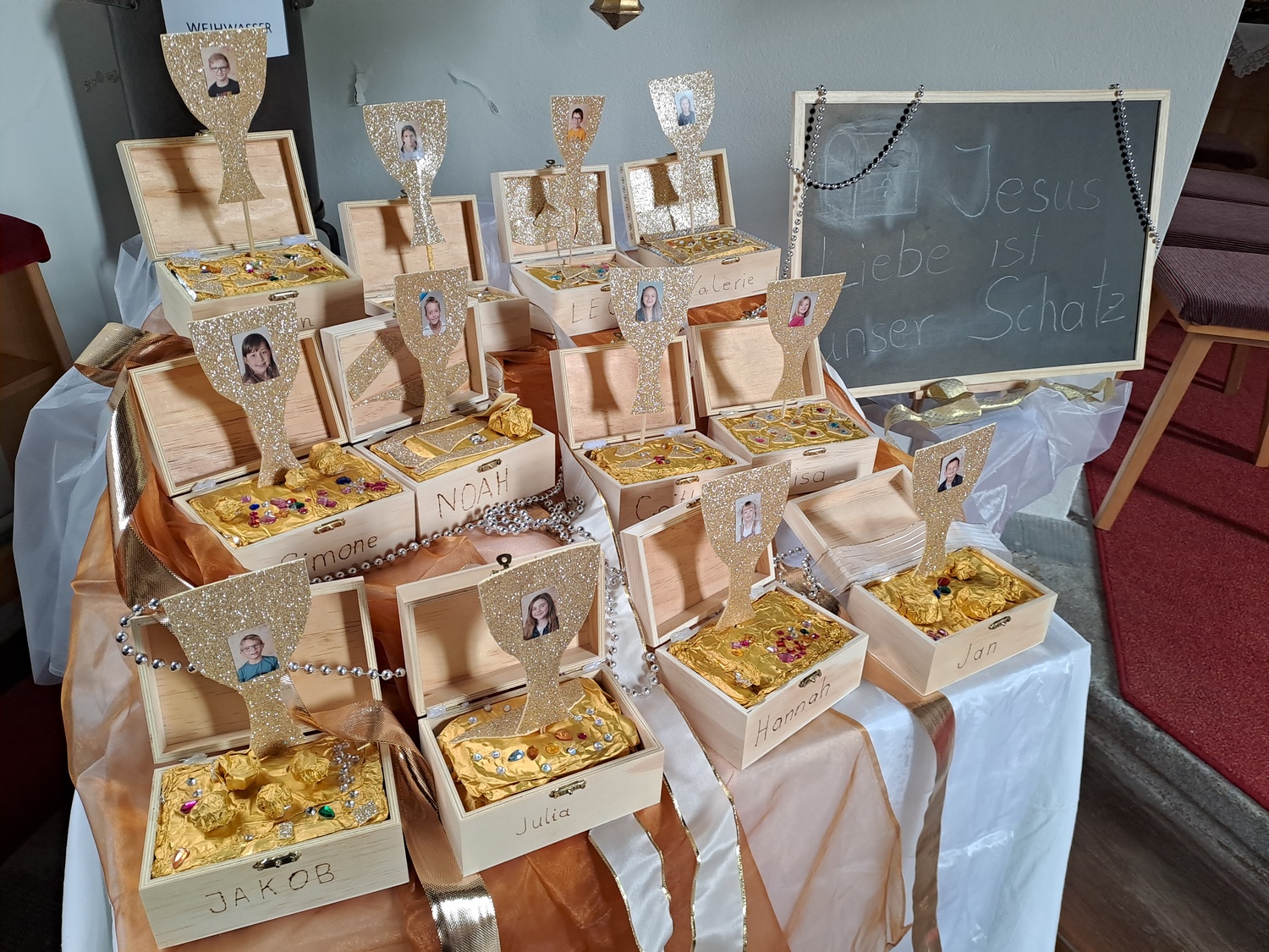 Am Samstag, 29. März stellten sich unsere Erstkommunionkinder der Pfarrgemeinde vor. Sie gestalteten mit Texten zum Thema: "Jesus Liebe ist unser Schatz" die Hl. Messe.