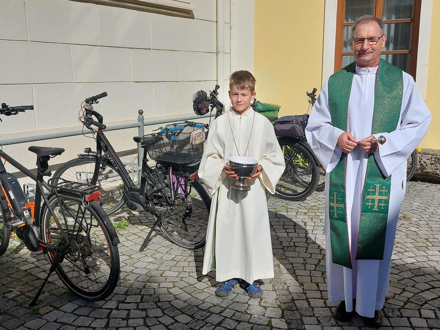 Viele kamen mit dem Fahrrad zur Kirche und die Fahrräder wurden im Anschluss gesegnet.